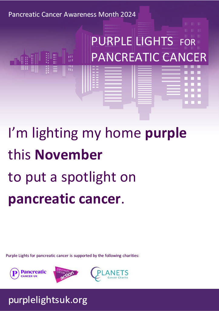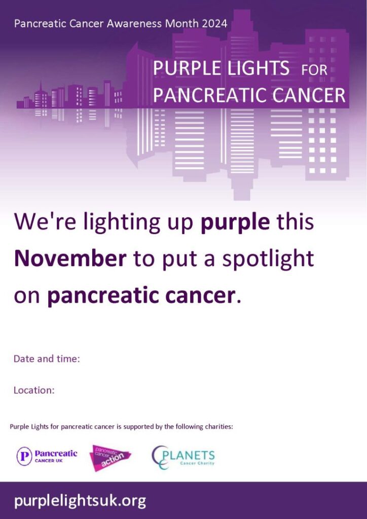 Purple Lights for pancreatic cancer will take place on World Pancreatic Cancer Day: 20th November 2025.